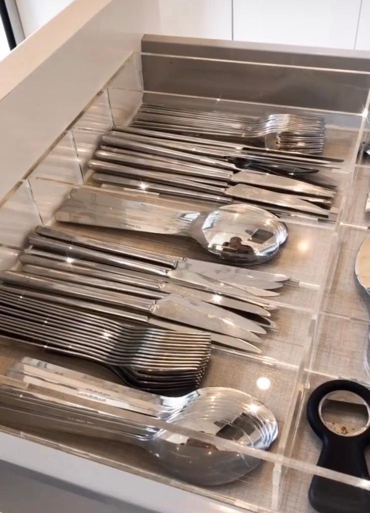 Prateleiras, suportes e bandejas em acrílico que ajudam a organizar e complementam a decoração do ambiente.