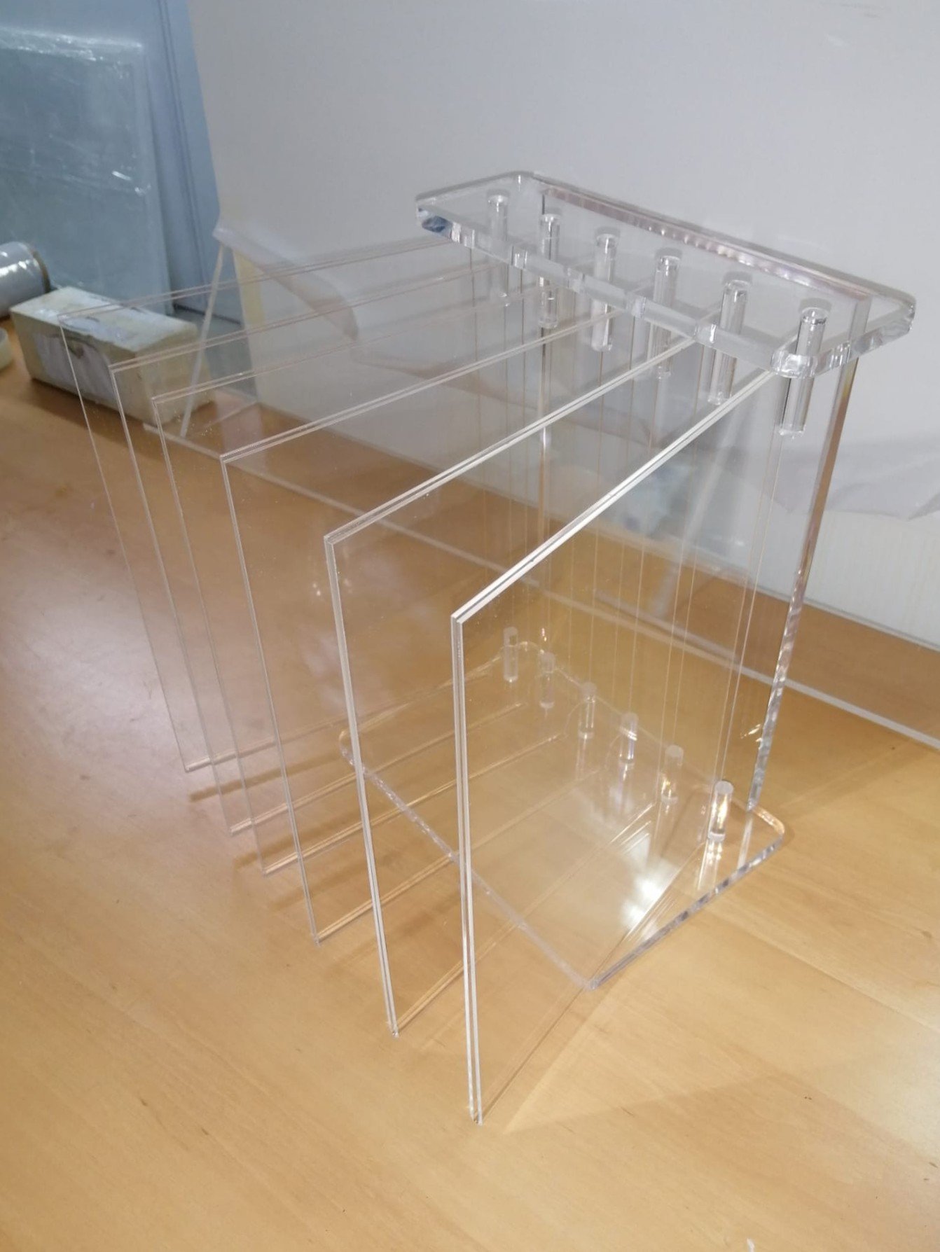 Expositores Personalizados Mesas em Acrílico Vitrines Púlpitos Estantes e Prateleiras Torre de ExposiçãoSoluções em acrílico para espaços práticos e apelativos