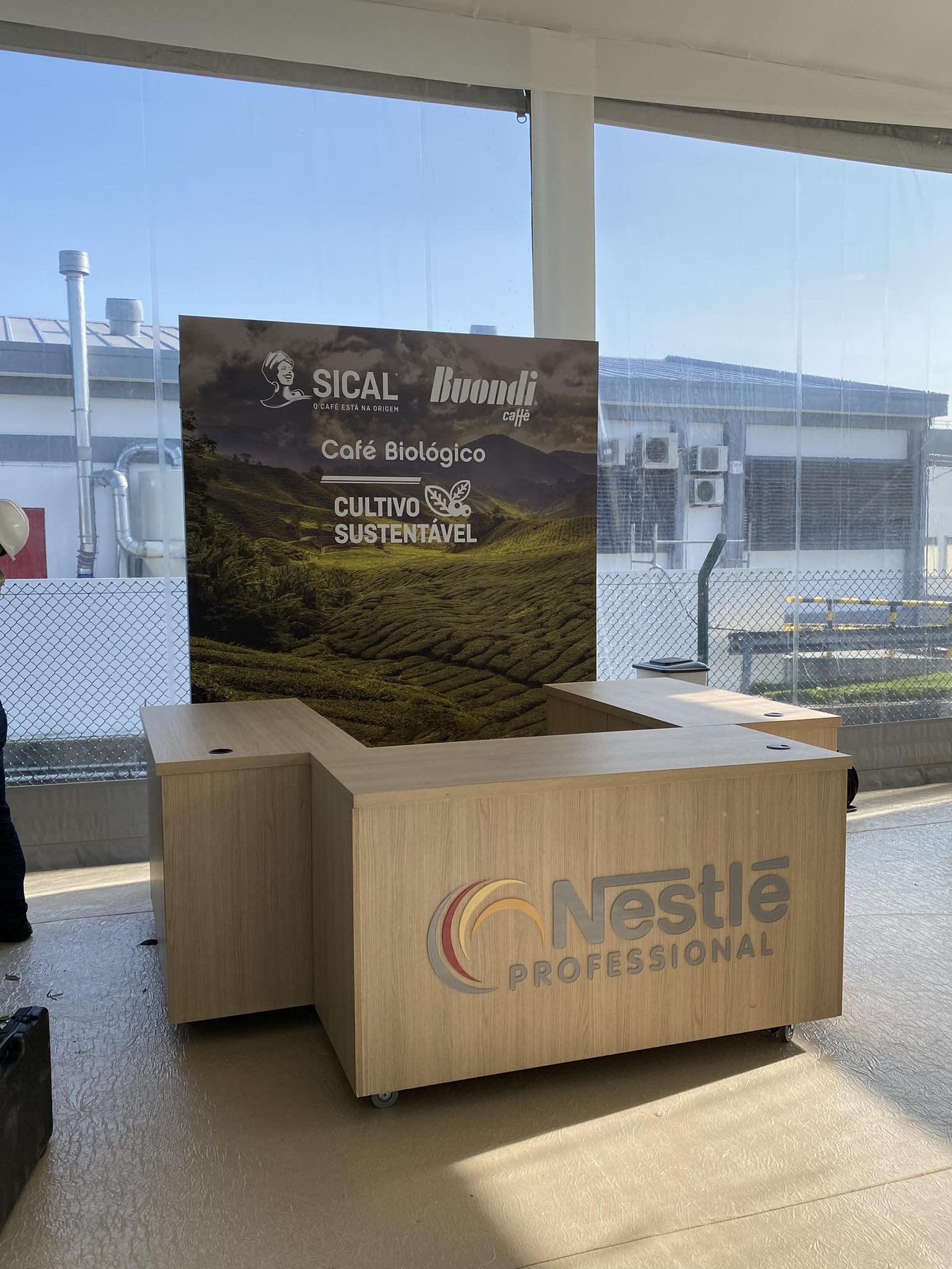 Sim. Todos os stands e materiais são desenvolvidos conforme as necessidades da sua marca e o estilo do evento.