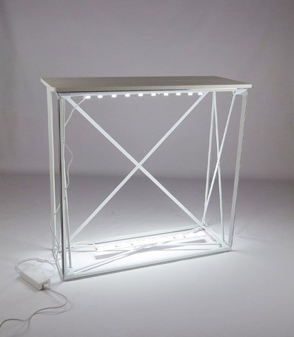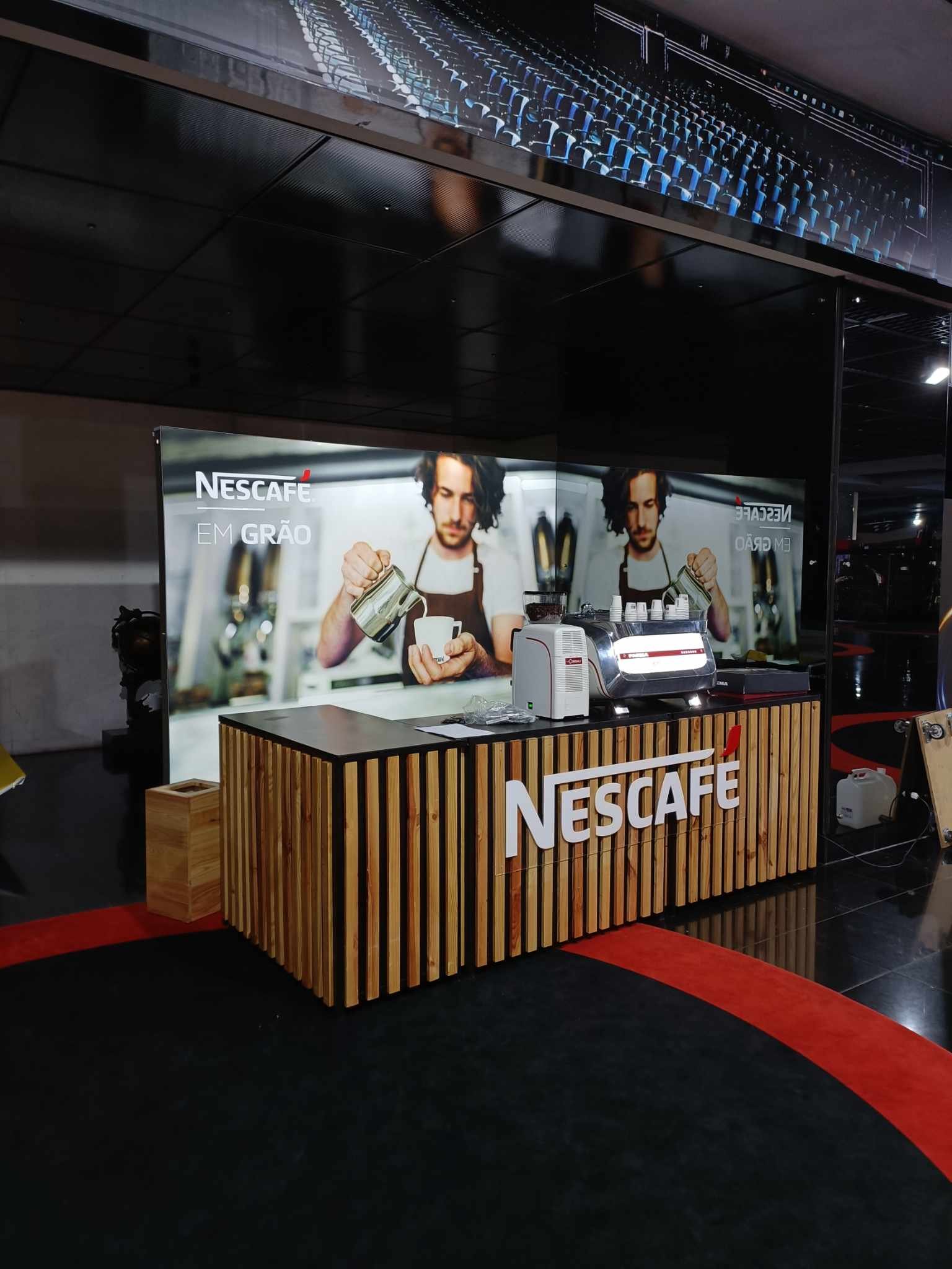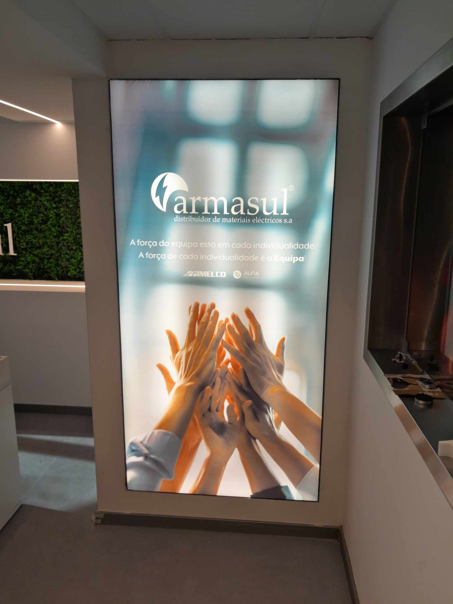 Sistema de iluminação embutida que realça e valoriza a imagem, garantindo máxima visibilidade.