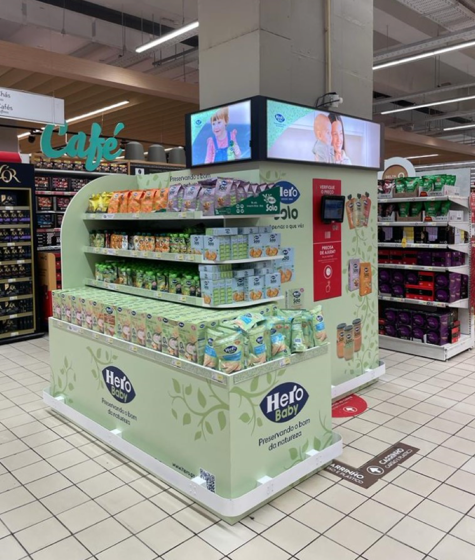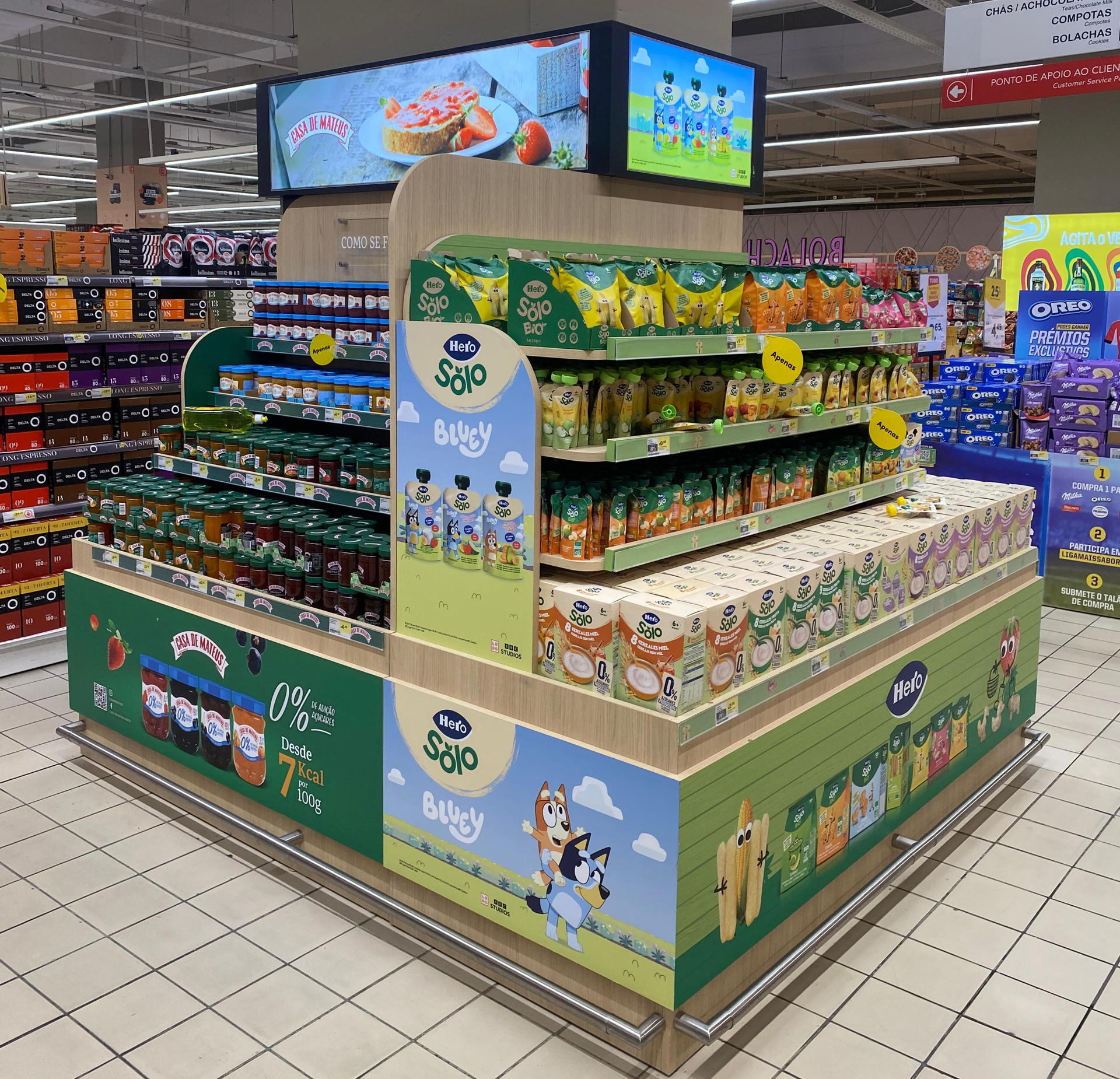 Desde o primeiro espaço produzido em 2023, a implementação tem evoluído com alterações visuais e inovações na comunicação, reforçando a presença das marcas no ponto de venda. O espaço ocupa aproximadamente 20 m².