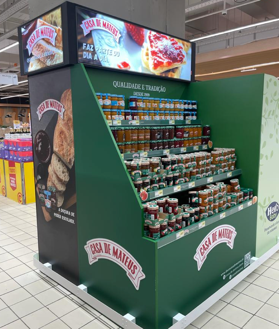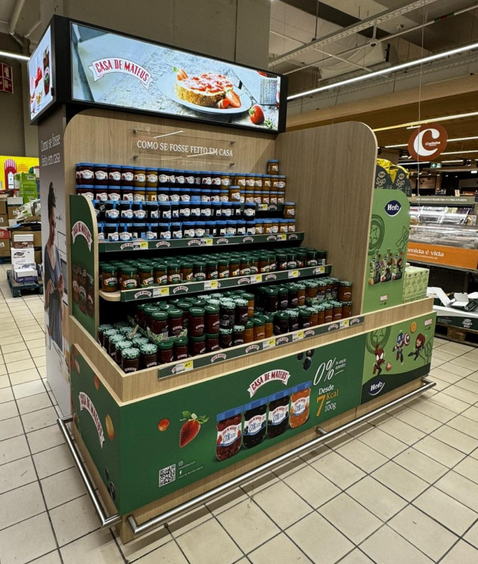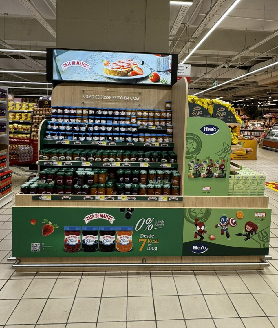 O projeto da Casa de Mateus e Hero no Continente Colombo traduz-se numa intervenção de design e comunicação que combina materiais resistentes, soluções gráficas de impacto e mobiliário funcional. A integração do pilar como elemento central reforça a inovação e consolida a presença das marcas no espaço, elevando a experiência do consumidor no ponto de venda.