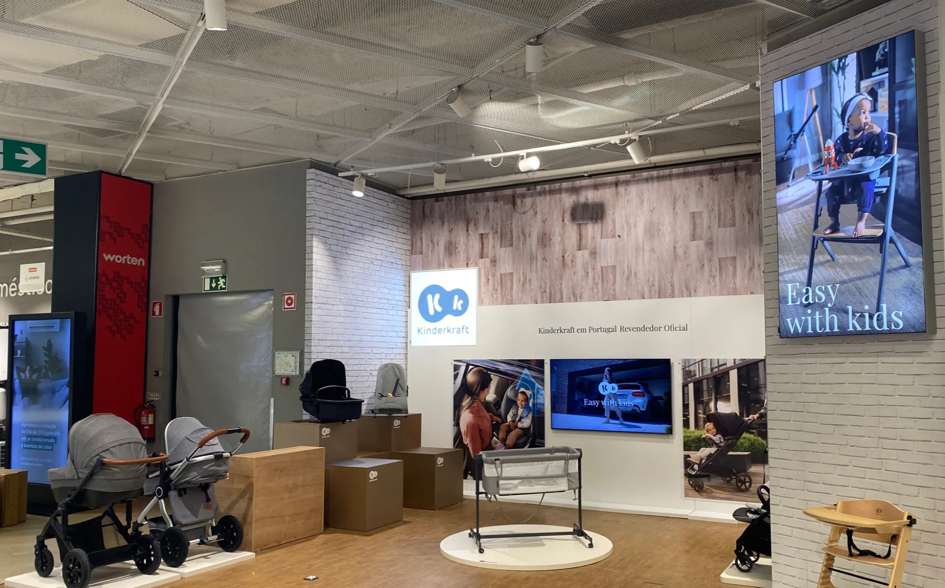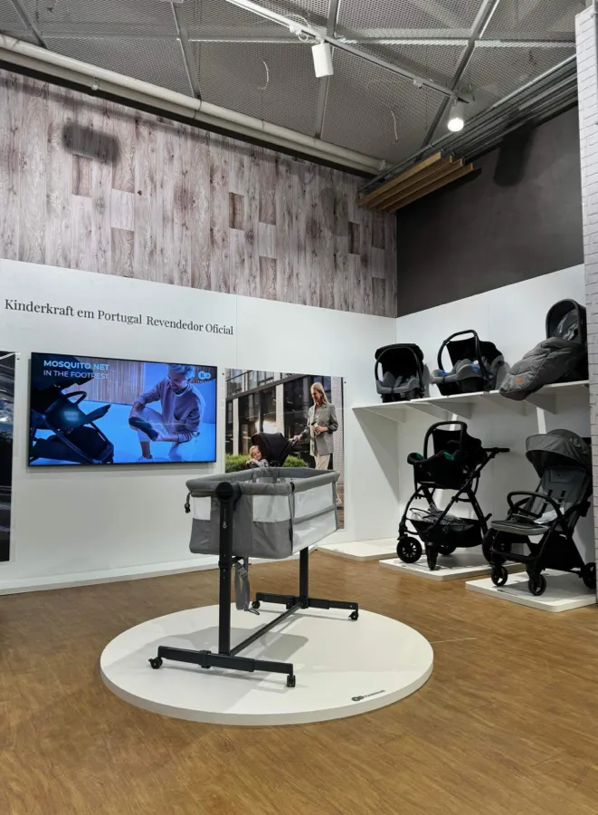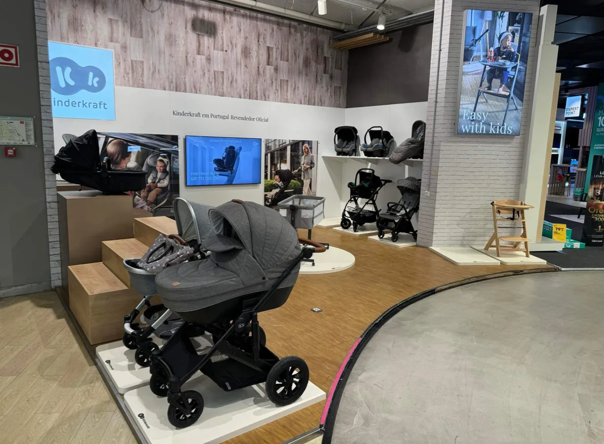 O espaço KinderKraft na Worten Colombo traduz-se num ambiente de marca premium, que une design contemporâneo, materiais de qualidade e soluções de comunicação visual atrativas, consolidando a presença da marca no mercado e fortalecendo a sua ligação com o consumidor.