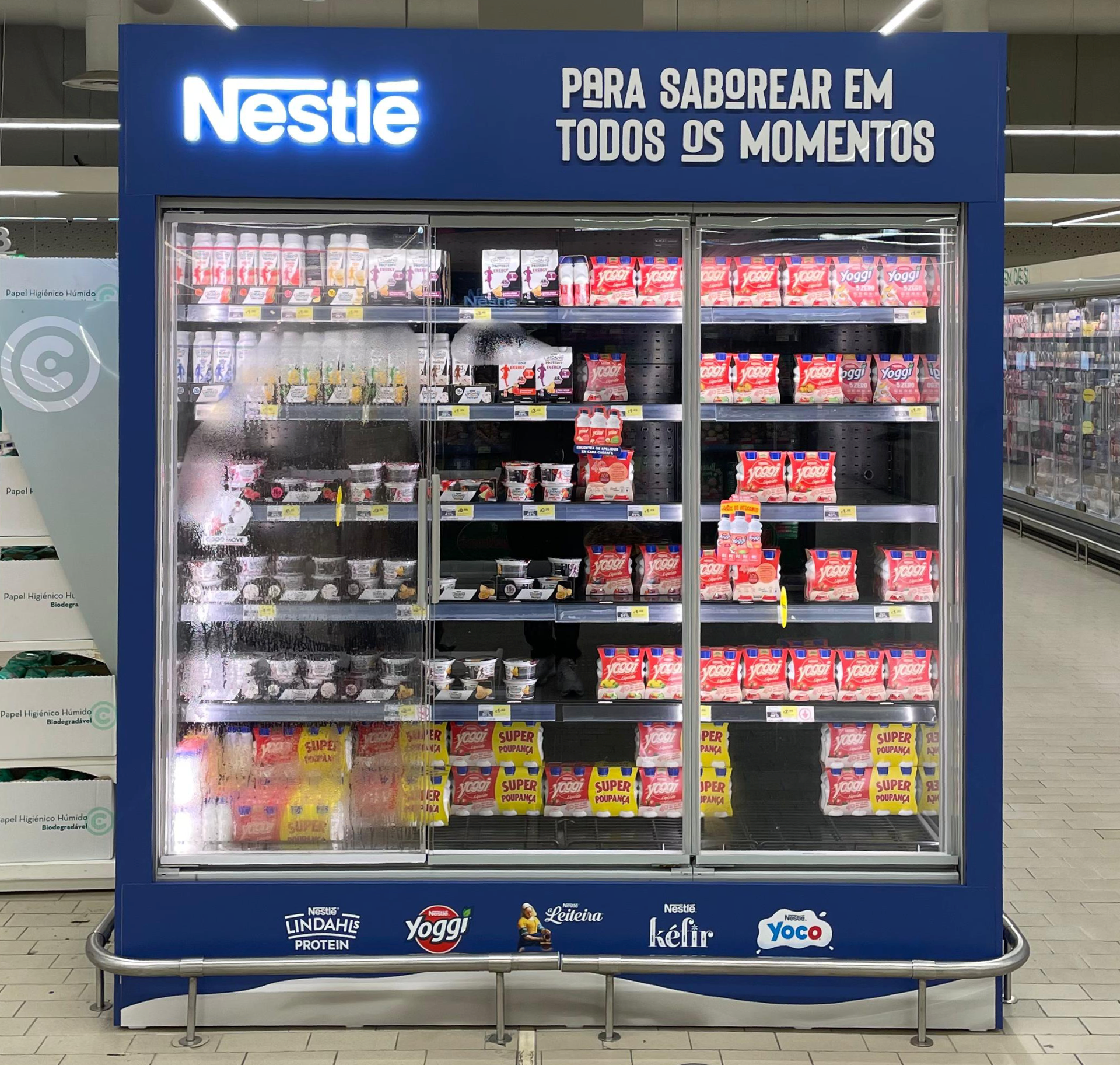 O projeto resultou numa solução funcional, estética e de grande impacto visual, que valoriza os produtos no ponto de venda e assegura flexibilidade na comunicação, mantendo a consistência da marca em todos os pontos implementados.