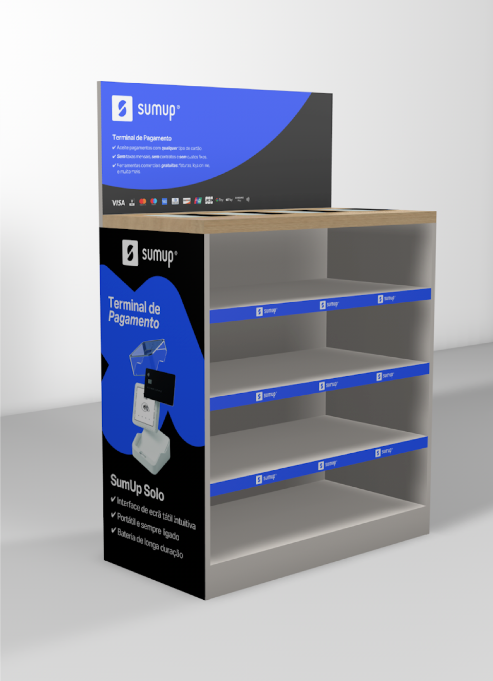 O presente projeto teve como objetivo o desenvolvimento, produção e implementação de expositores para a marca SumUp, destinados à apresentação e promoção dos leitores de pagamento automático, assegurando uma solução funcional, elegante e alinhada com a identidade da marca.