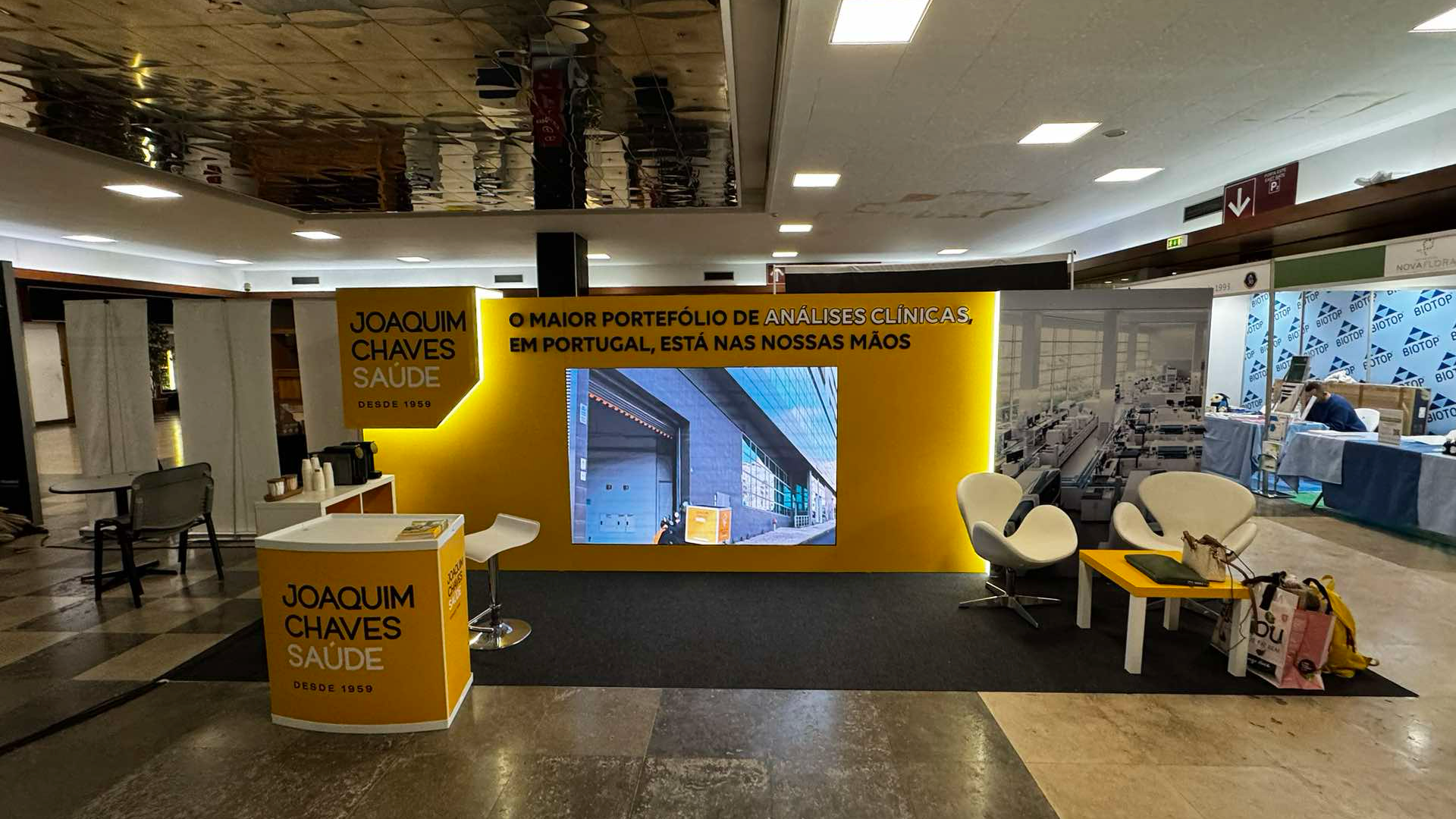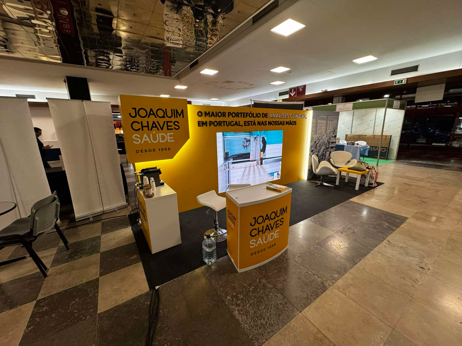 O stand desenvolvido resultou numa solução funcional, moderna e distintiva, que alia design, tecnologia e comunicação.
