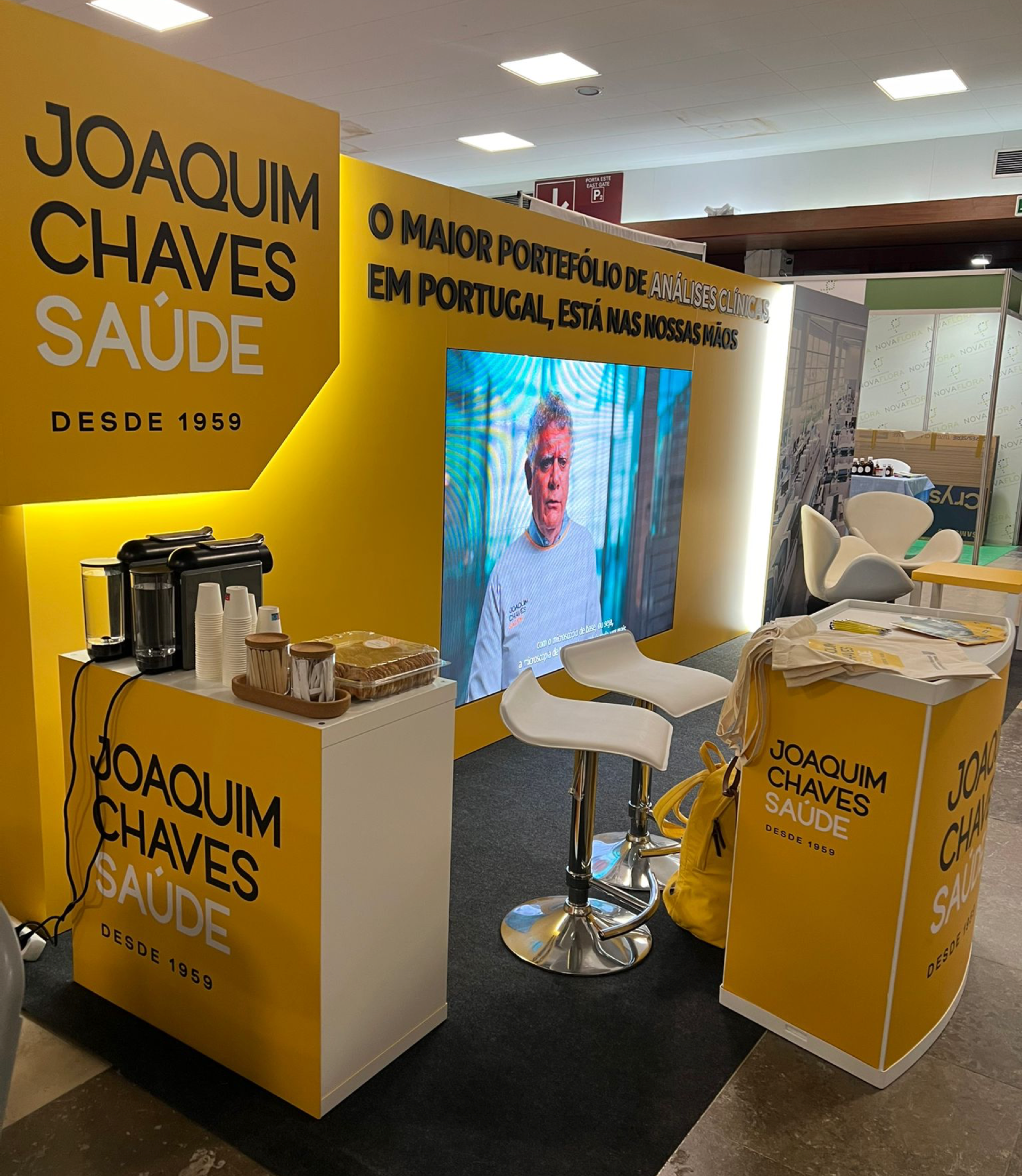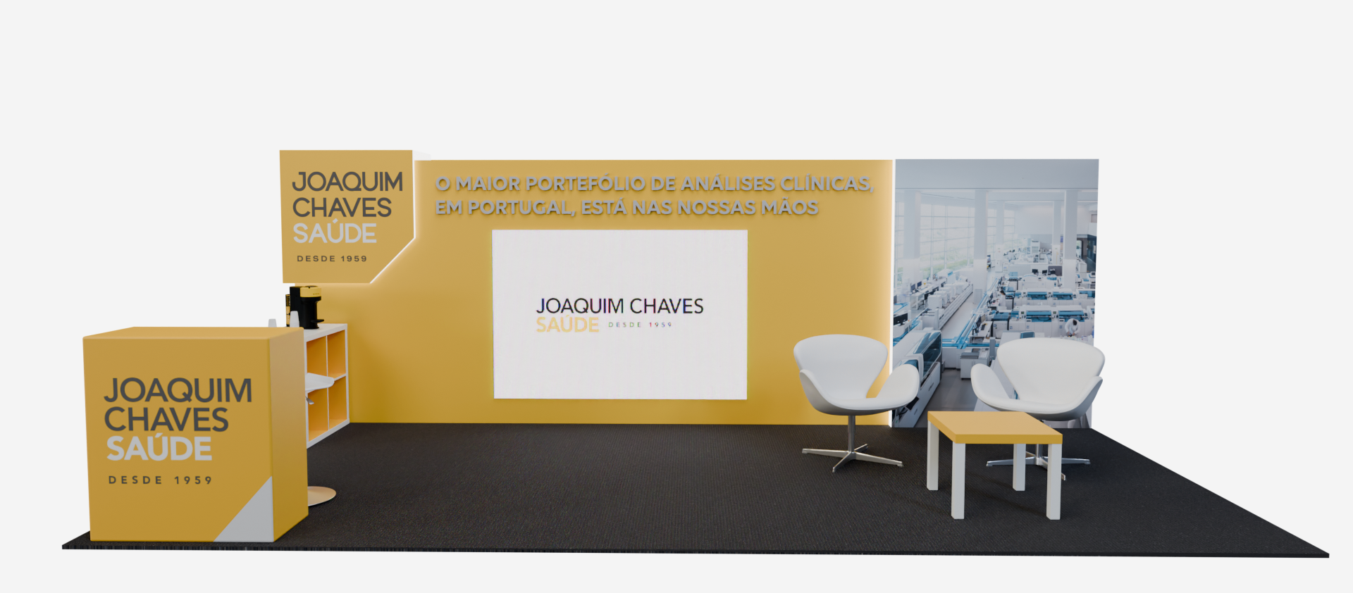 Este projeto foi desenvolvido no âmbito da parceria com a TEAM CRIATIVA para a realização do evento do cliente na Exponor - Porto, contemplando o fornecimento e implementação de um stand institucional da marca Joaquim Chaves.